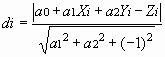 Where Xi, Yi and Zi are positions of arbitrary points in the object space. Also, a two order surface equation is defined in Equation 5 for the determination of roughness from the reference surface, and the coefficient of this equation is computed by the least square method just as in the plane equation. And the normal distance from an arbitrary point in the sample area to the reference surface should be computed by a unit normal vector as shown in Equation 6.