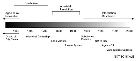 The considerable attention that land administration, and particularly the core cadastre, has received in recent times has resulted in a great deal of activity world-wide to better understand cadastral systems. There have been conferences, workshops, books, journal articles, academic courses and declarations on all aspects of cadastres (Williamson, 2000a). All this activity has improved our understanding of the cadastral concept and the role of cadastres in society. This paper provides an insight into the evolution of cadastral thinking over the last 20 years or so. THE CHANGING HUMANKIND TO LAND RELATIONSHIPThe key to understanding the evolution of modern cadastres is to recognise that cadastres, in one form or another, are an essential tool in administering the relationship between humankind and land. At the same time this relationship in almost every society is dynamic, albeit the relationship varies for almost every situation (Ting and Williamson, 1999 and Williamson and Ting, 2001). This continual change can be seen in the context of "Western" land tenure systems in Figure 1.