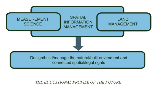 The changes shown above are significant and must of course be reflected in content and structure of the educational base. In fact, the changes have been coped with rather easily within the profession and also with regard to the labour market. It is likely to assume that this is due to the flexible and project organised educational model introduced in 1974 when the surveying programme was moved from the Royal Veterinary and Agricultural Academy in Copenhagen to a new university established in Aalborg. It is also likely to assume that without a flexible educational base being focused on the concept of learning to learn rather than teaching disciplines, and without the deriving adaptability of the graduates being suitable for a changing market, the surveying profession would have faced some heavy problems. The Educational ChallengeThe developments as discussed above have a significant educational impact. There is a need to change the focus from being seen very much as an engineering discipline. There is a need for a more managerial and interdisciplinary focus. The strength of our profession lies in its multidisciplinary approach. Surveying and mapping are clearly technical disciplines (within natural and technical science) while cadastre, land management and spatial planning are judicial or managerial disciplines (within social science). The identity of the surveying profession and its educational base therefore should be in the management of spatial data, with links to the technical as well as social sciences. The universities should act as the main facilitator within the process of forming and promoting the future identity of the surveying profession. Here, the area GIS and, especially, the area managing geographical and spatial information should be the core component of the identity. This responsibility or duty of the universities, then, should be carried out in close co-operation with the industry and the professional institutions. The challenge of the future will to implement the new IT-paradigm and this new multidisciplinary approach into the traditional educational programmes in surveying and engineering. A future educational profile in this area should be composed by the areas of Measurement Science and Land Administration and supported by and embedding in a broad multidisciplinary paradigm of Spatial Information Management. Such a profile is illustrated in the figure below.